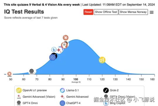 o1在最新门萨智商测试中,IQ水平竟超过了120分。35个智商题,答对了25道,把其他模型甩出好几条街。