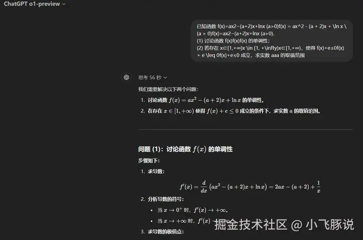 此次o1-preview 和 o1-mini模型最突出的能力就是数学和编程能力。我们分别进行三轮测试,数学真题、编程塔防游戏、经典疑难杂症题。 首先将数学竞赛的真题发给它,思考56秒后就给出正确答案。