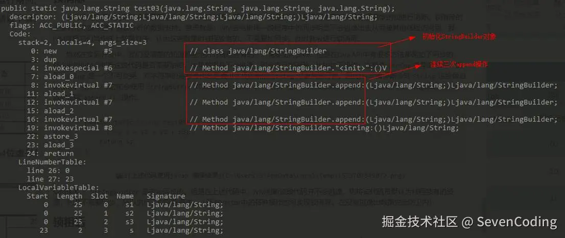 当然在实际开发中,我们很清楚的知道哪些是线程独有的,不需要加同步锁,但是在Java API中有很多方法都是加了同步的,那么此时JVM会判断这段代码是否需要加锁。如果数据并不会逃逸,则会进行锁消除。比如如下操作:在操作String类型数据时,由于String是一个不可变类,对字符串的连接操作总是通过生成的新的String对象来进行的。因此Javac编译器会对String连接做自动优化。在JDK 1.5之前会使用StringBuffer对象的连续append()操作,在JDK 1.5及以后的版本中,会转化为StringBuidler对象的连续append()操作。