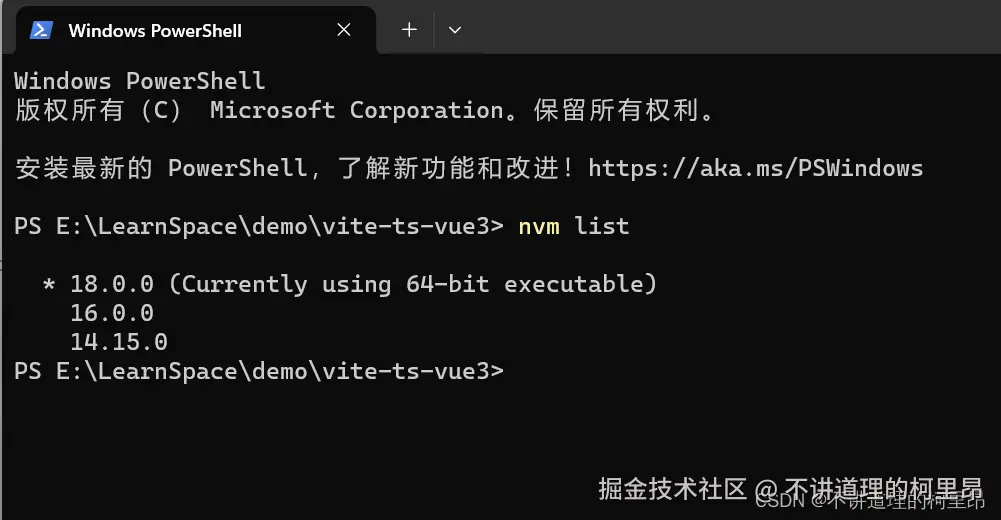 由于Vite 需要 Node.js 版本 14.18+,16+。而且有些模板需要依赖更高的 Node 版本才能正常运行,包管理器可能会发出警告,请升级你的 Node 版本。推荐全局安装nvm对多个node版本进行管理,自行搜索教程,不多介绍了。