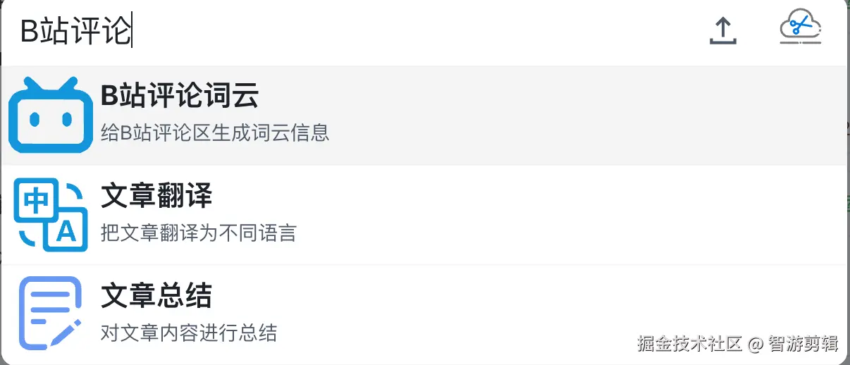如何获取B站评论词云 智游剪辑 2024-09-27 138 阅读1分钟 评论词云是一种可视化工具,用于展示文本数据中关键词的频率和重要性。通过将评论或反馈中的词汇呈现为云状图形,可以帮助我们快速识别出视频中的主题,下面教大家如何给B站的评论生成词云信息 使用说明 打开智游剪辑(zyjj.cc),搜索B站评论词云 我们只需要把B站的视频链接直接粘贴,然后点击立即生成就可以了 效果预览 最后生成的效果如下