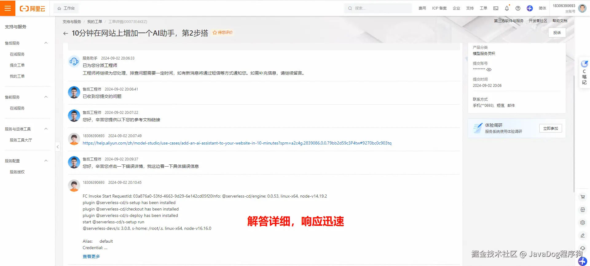 体验: 极为满意。提交工单后秒回复,秒解决。