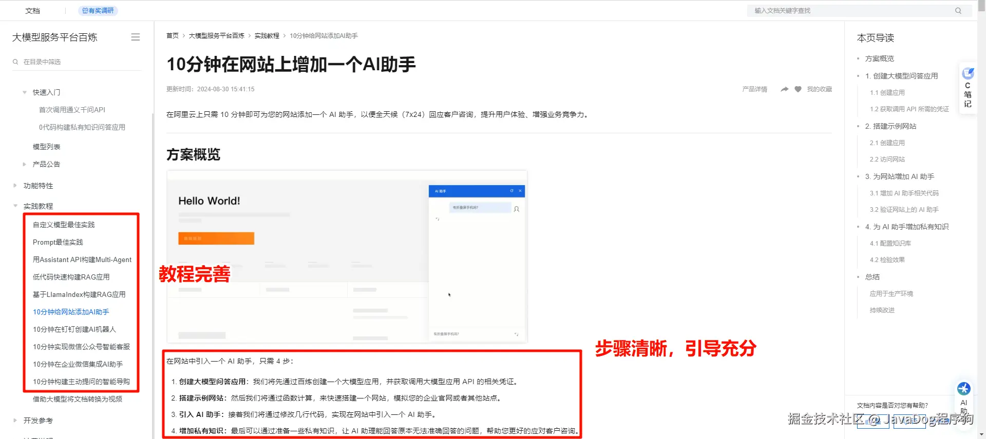 文档: 提供的步骤清晰,通过简单的点击和配置即可完成 AI 助手的设置。部署过程有明确的指导,且开发者文档详尽,使我能够在短时间内理解并开始使用。