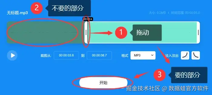 与上面两种方法相比,该软件没有时长和文件大小限制,用户能够自由地把音频剪切。数据 蛙能够无损输出,保证转换后的音频质量不受损失。由此可见,使用它进行音频剪辑是一个好选择。