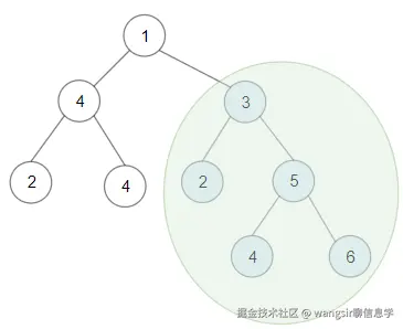 输入:root = [1,4,3,2,4,2,5,null,null,null,null,null,null,4,6]