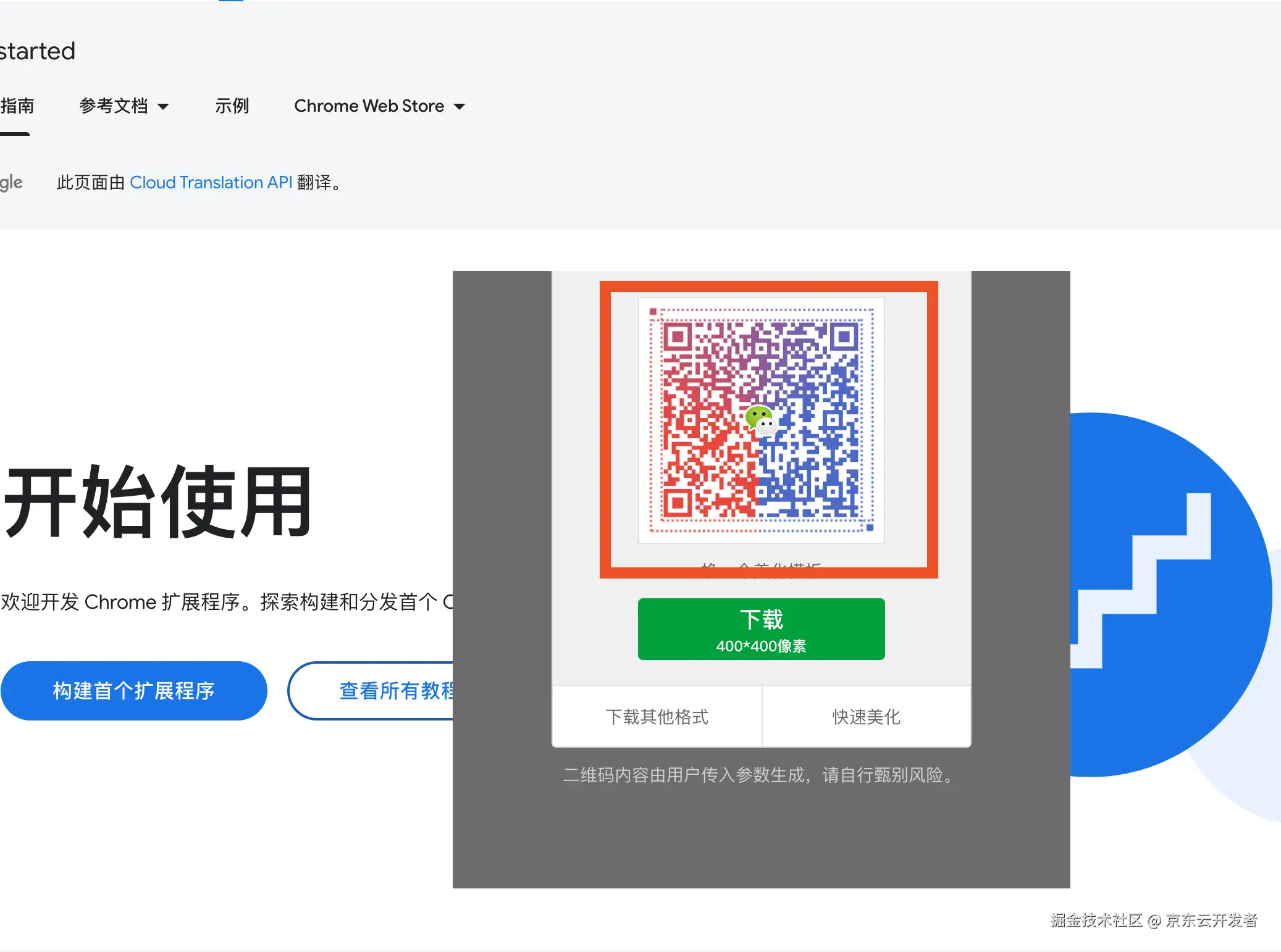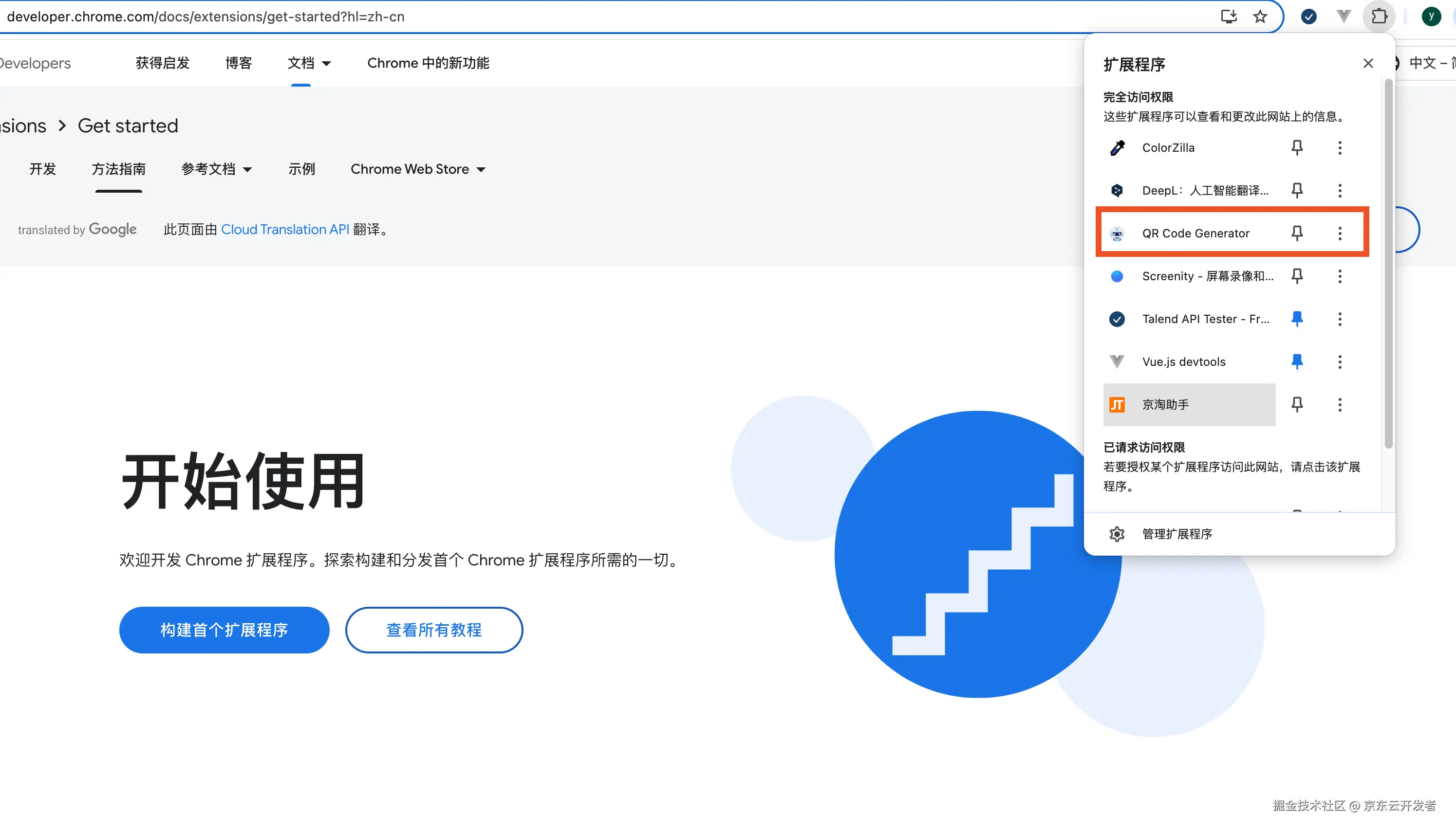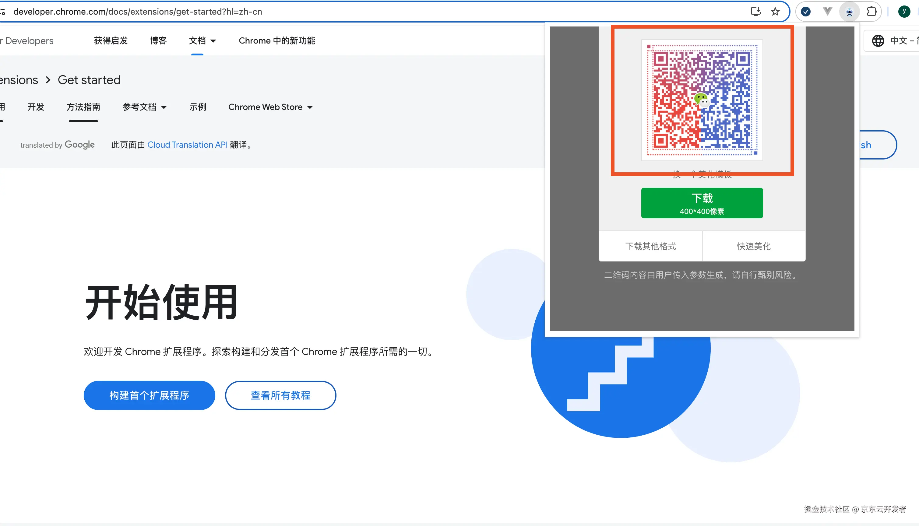 - 在浏览器右上角选择该插件《Generate QR Code》,在网页右上角生成对应的二维码,二维码不消失,视为验证通过。