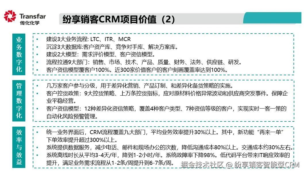 经过层层挑选,在2022年,纷享销客连接型CRM的产品定位,以及灵活的PaaS能力,成为了传化化学首选的数字化解决方案服务商。