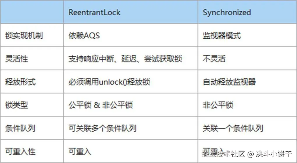 - 无法知道是否成功获得锁,相对而言,Lock可以拿到状态