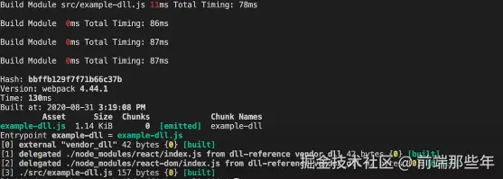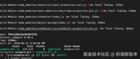 而通过dll-plugin和dll-reference-plugin之后,那这个正常的这个固定时间就变成像下面那样,引入模块是瞬间完成构建效率瞬间提升10倍,因为我们减少了那个固定时最耗时的模块。