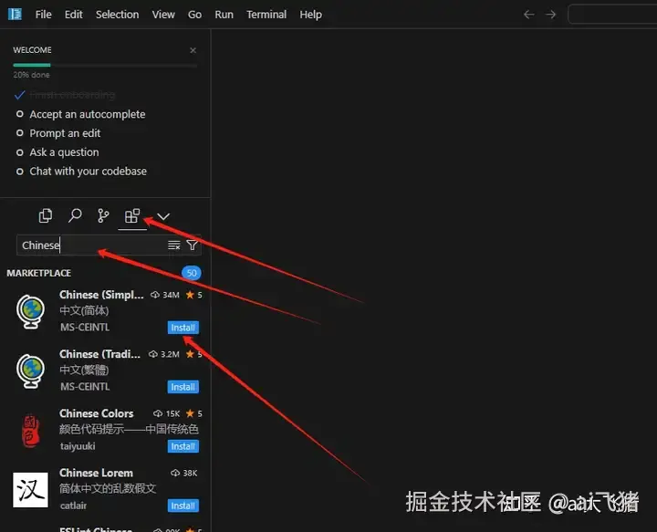 Extensions(插件区):在此模块,你可以浏览和管理各种扩展,安装你需要的工具。与 VS Code 一样,Cursor 支持丰富的插件库,扩展你的开发能力。