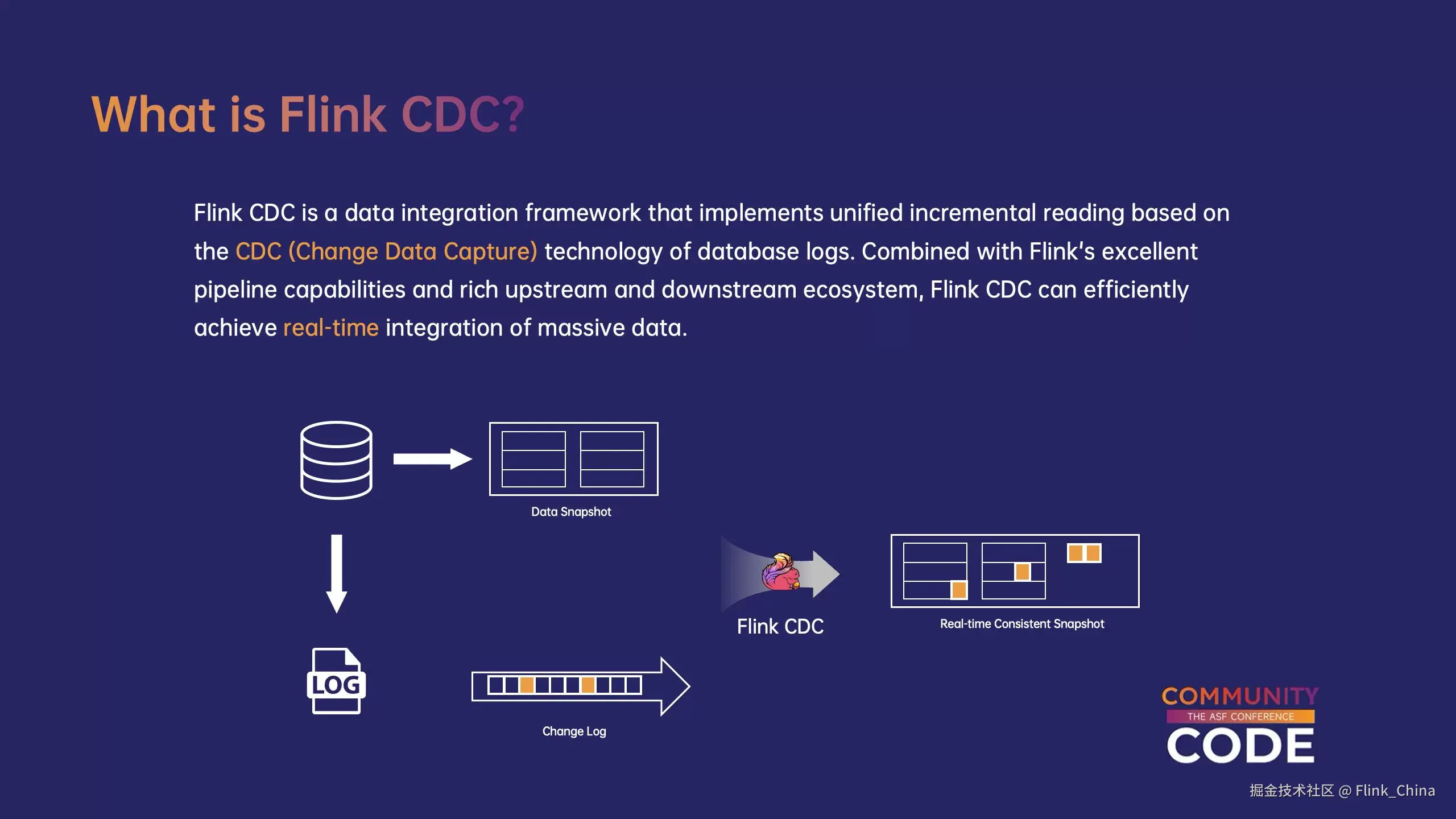 Flink CDC 是一个数据集成框架,它基于数据库日志的 CDC(变更数据捕获)技术实现了统一的增量和全量数据读取。结合 Flink 出色的管道能力和丰富的上下游生态系统,Flink CDC 可以高效地实现海量数据的实时集成。