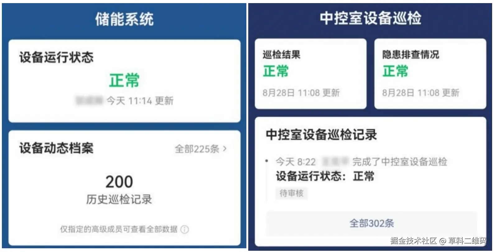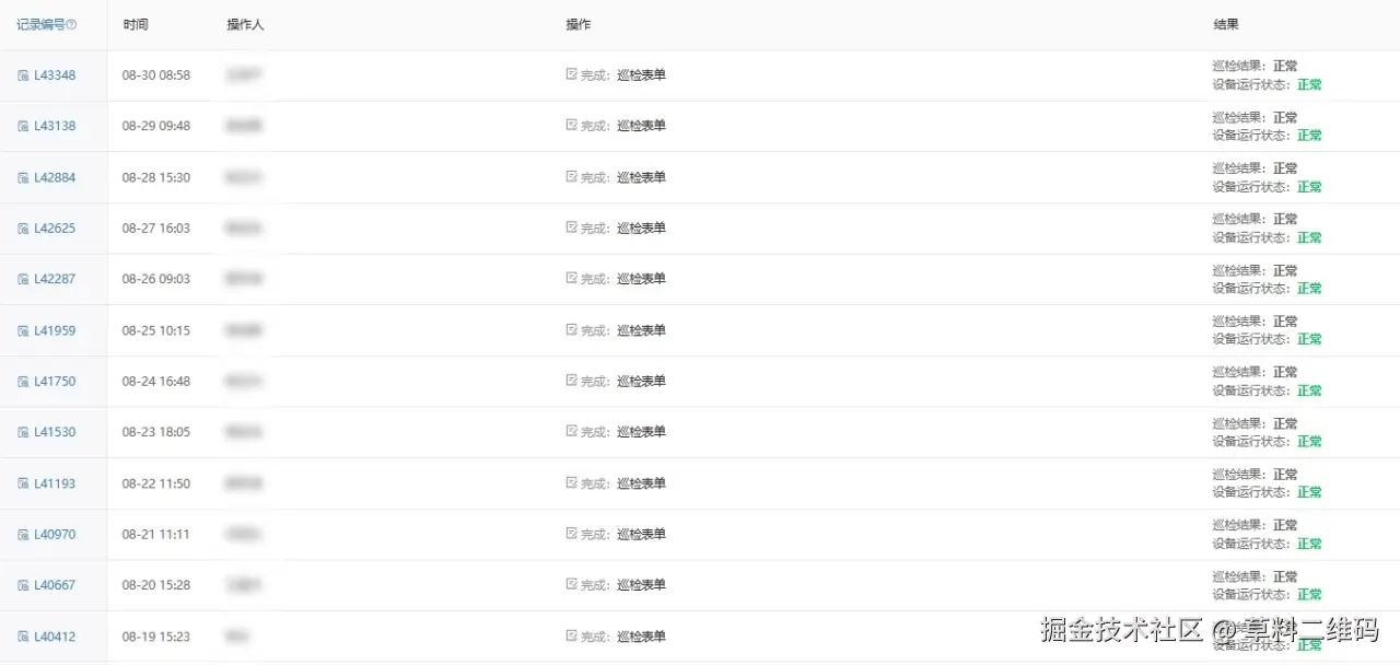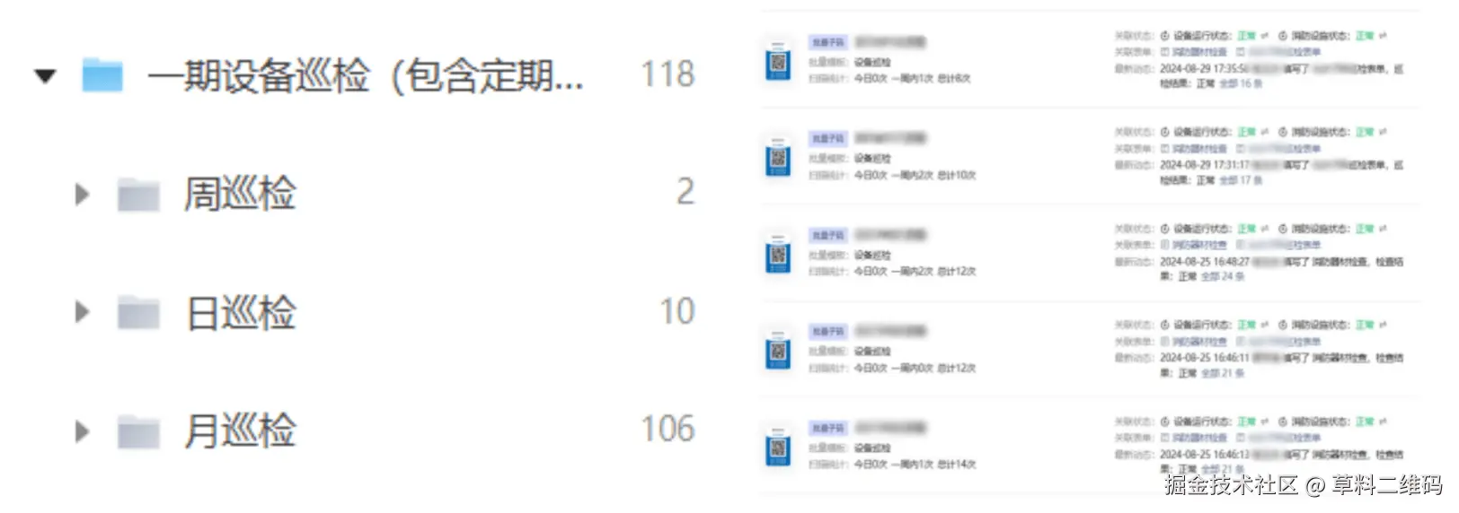 巡检设备主要是手机微信小程序,有点检任务管理和数据采集等功能。系统已逐步发展为分布范围广、设备种类多、外部环境复杂的大系统,比起纸质巡检表,以及需要另外购买硬件的巡检方式,用二维码来做巡检,成本更低,操作也非常方便。