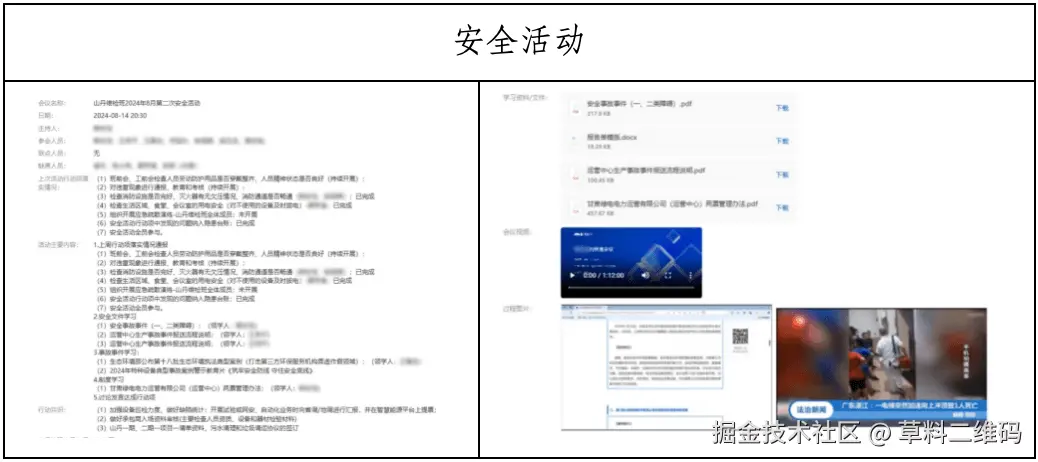 (2)三会一活动:依托草料二维码开展,做到了全过程资料(含影像资料)的长效存储、有据可查。