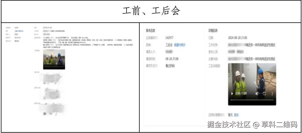 在班组安全管理中,二维码可以用于安全培训记录、安全活动、班前、班后会、工前会、工后会等环节。每位员工只需扫描二维码便可查看班组的培训记录、安全活动记录、班前、班后会记录、工前会、工后会等相关记录,实时进行了解。
