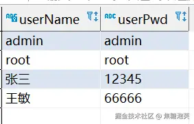 // 数据库查询实例。我是根据用户名username去数据库中查询。