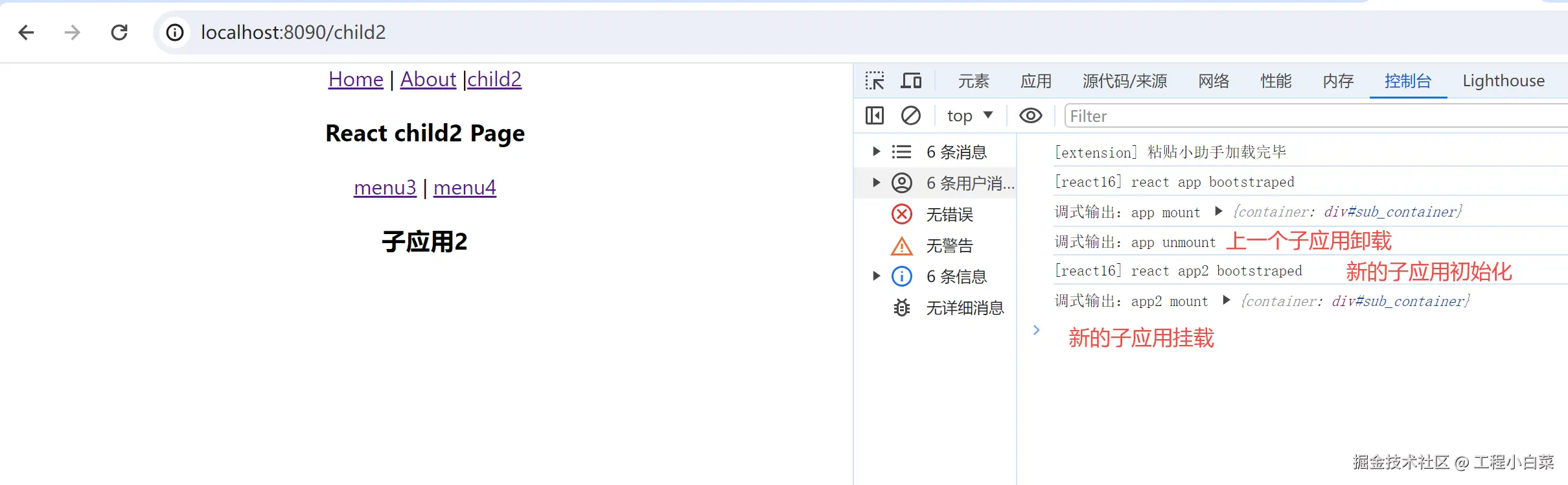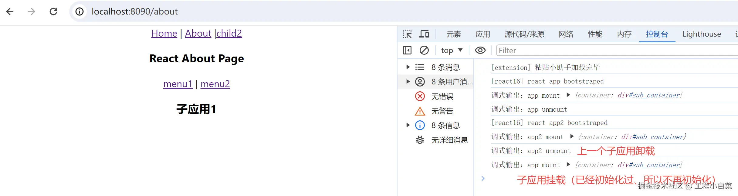- 跳转到已经初始化过的子应用,子应用不再进行初始化