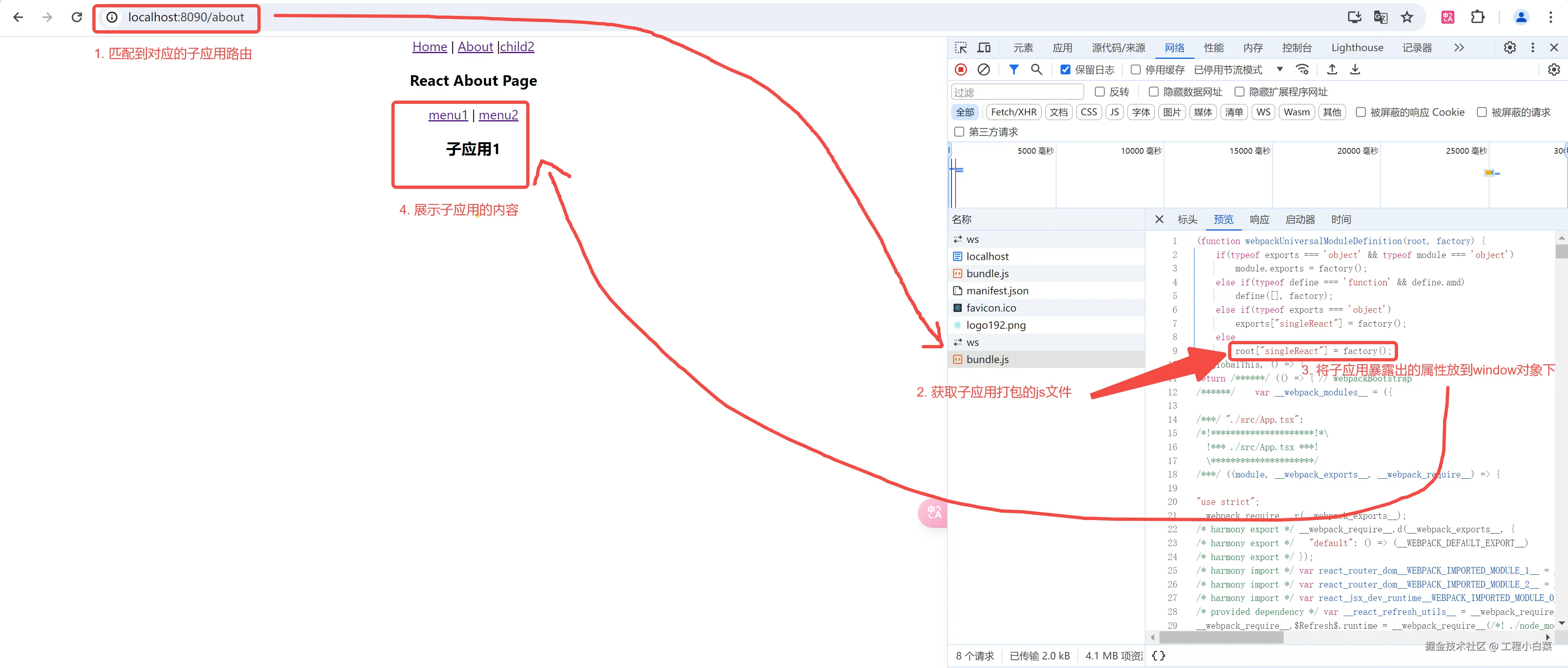 为了让父应用能够加载子应用,需要将子应用打包成 js 文件供父应用使用