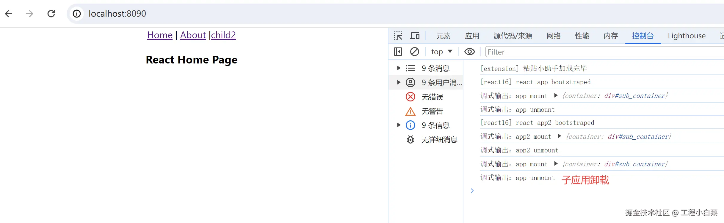 到此,我们已经成功实现了一个简易版的single-spa