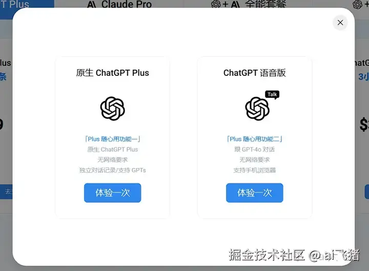 然后我们来到支持应用的页面,有 ChatGPT,Claude 以及 OpenAI API,点击对应我们需要体验使用的