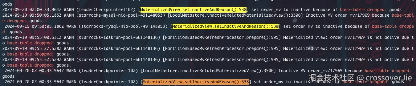 与此同时还有物化视图 inactive 的日志,也怀疑如果视图是 inactive 之后会导致业务使用有问题。