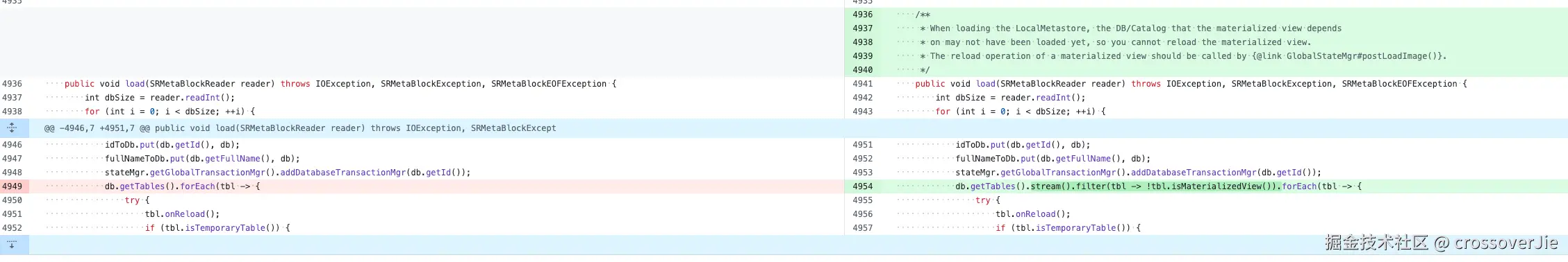 修复过程也很简单,就是 reload 时跳过了 MV,等到所有的数据都加载完之后会在 com.starrocks.server.GlobalStateMgr#postLoadImage 手动加载 MV。