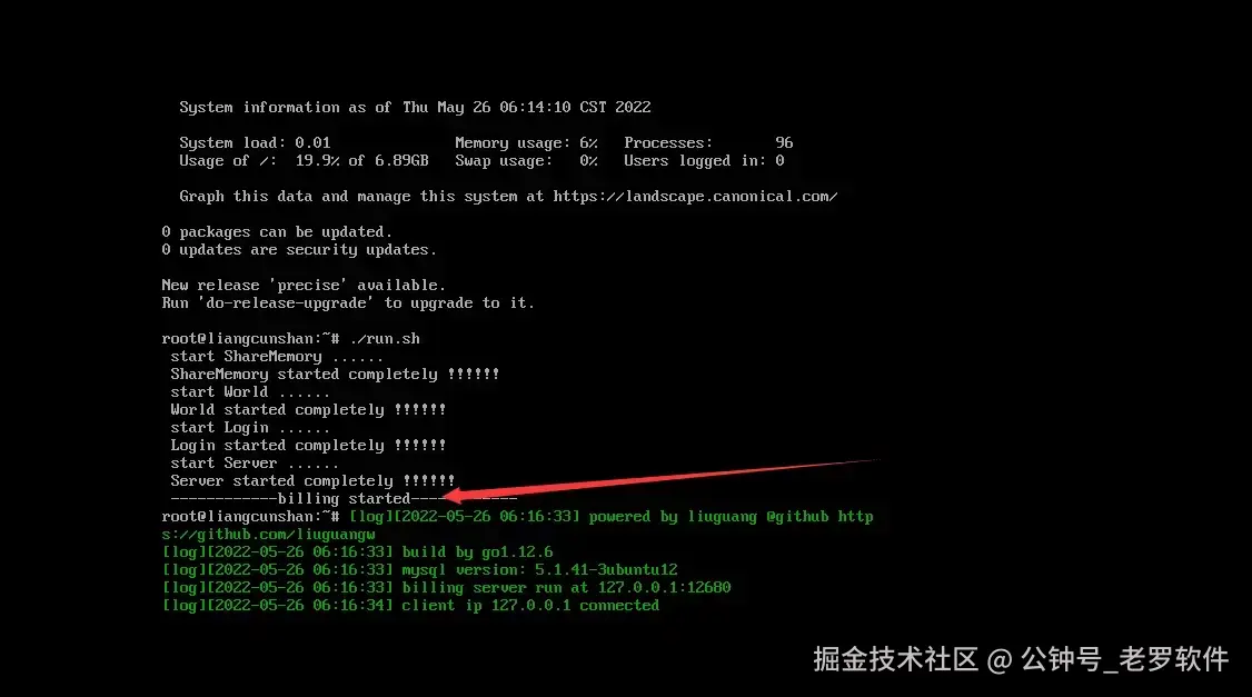 等待出现billing started 就代表成功了