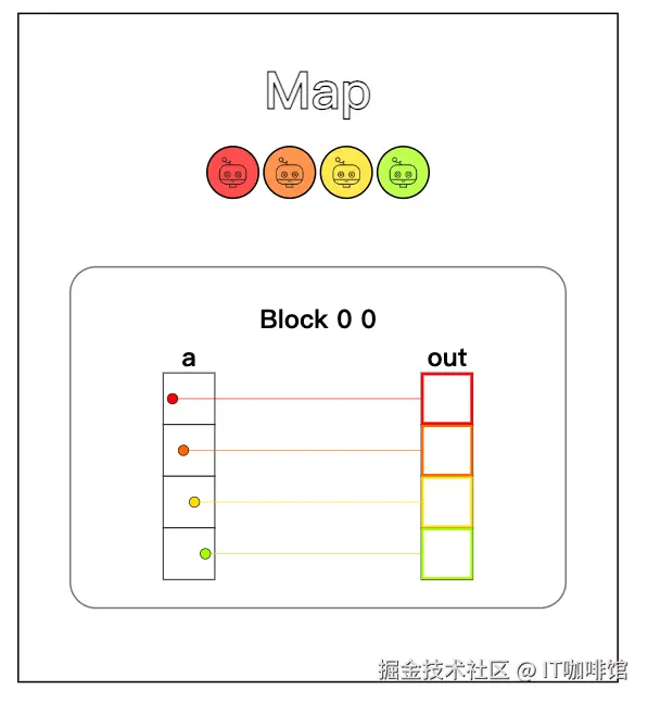 这些代码看起来像 Python,但实际上是 CUDA!您不能使用标准 Python 工具库,挑战都是为了说明概念,所以只需要执行简单的操作,基本上是 +、*、简单数组索引、for 循环和 if 语句,在这个例子中你只需处理局部变量来完成输入输出的传递,将该函数视为call每个线程运行一次。唯一的区别cuda.threadIdx.x每次都会发生变化。