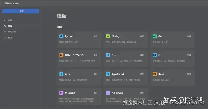 项目模板目前支持Python、Go、Java等语言,还支持不少Web开发的框架