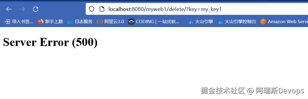 错误日志显示了一个 HTTP GET 请求,路径为 /myweb1/delete/,参数为 key=my_key1,返回的状态码为 500。这个错误通常是由于服务器端代码出现了错误,或者服务器端配置不正确导致的。先检查一下视图函数、模板文件以及相关配置,找出问题所在。如果无法解决问题,可以尝试查看 Django 的错误日志,或者在浏览器开发者工具中查看请求返回的状态码和错误信息。