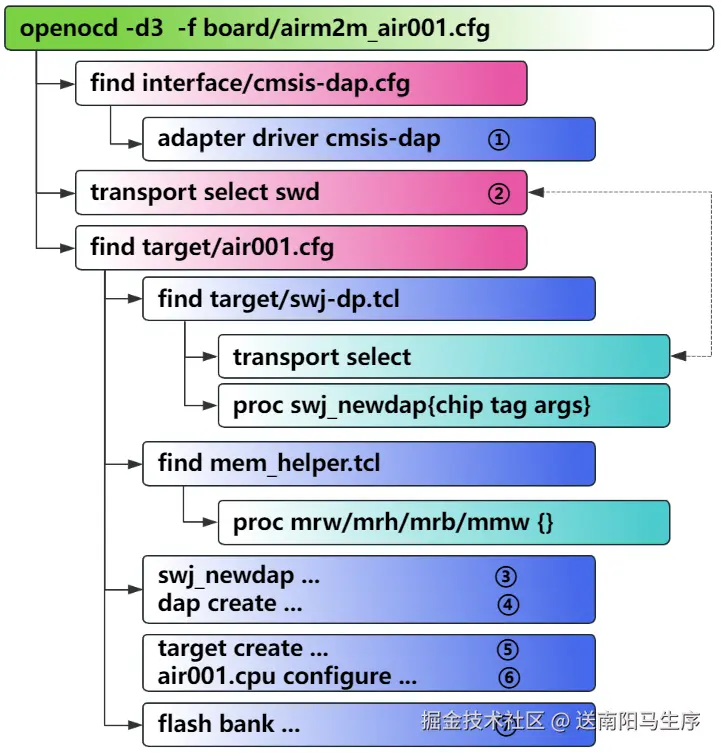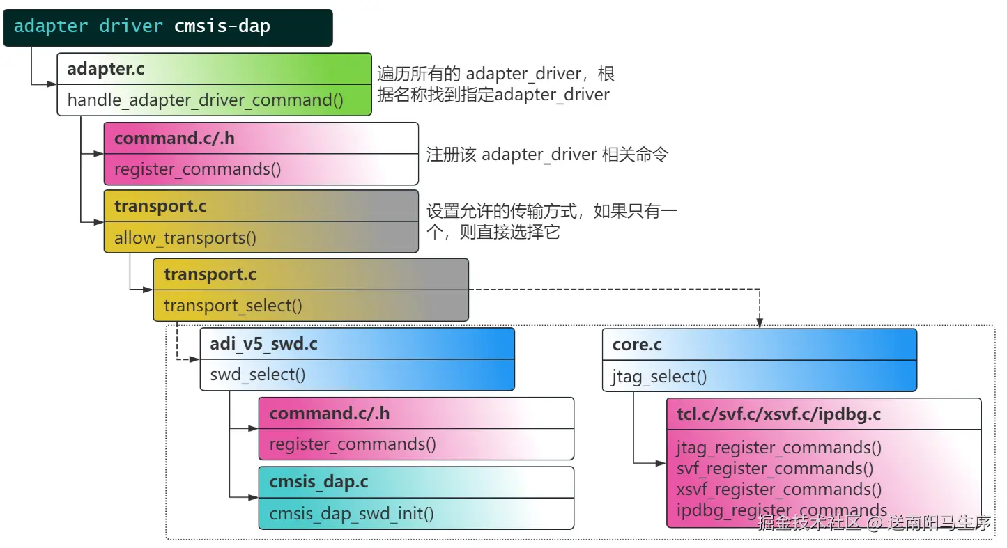 2)adapter driver cmsis-dap 命令的执行逻辑如下: