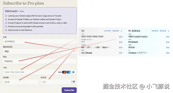 我们打开wildcard,将支付卡片页面的信息复制粘贴到Claude的页面即可。
