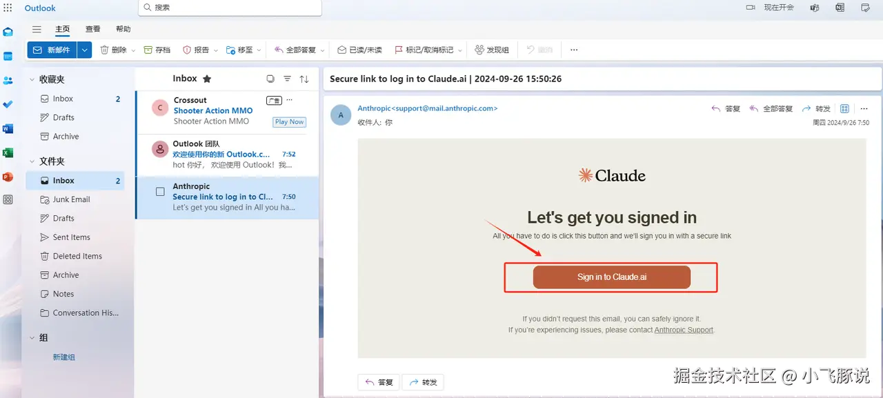 ②outlook邮箱会收到一条Claude注册的验证邮件,我们点击进行验证即可。