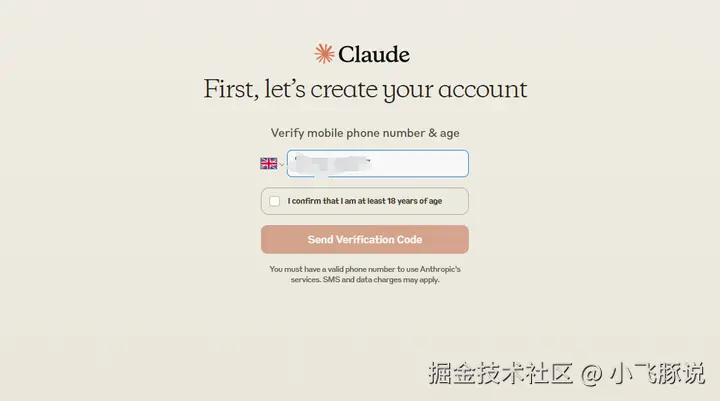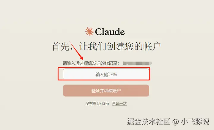 我们拿到手机号之后,重新回到Claude页面,做最后的验证工作。