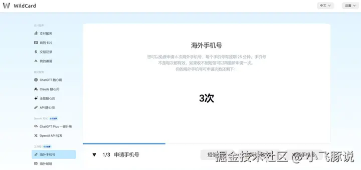 前面就有讲的,wildcard是有提供海外手机号和邮箱的,开通他们的支付会员之后每项有3次免费额度,对小白来说很方便。