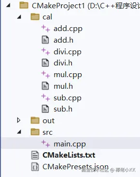 剩下的代码类似,这样我们就构建好了一个Cal的demo,但是我们现在运行不起来的,因为我们这个是CMake工程,得编写一下CMake文件,打开我们的CMakeLists.txt文件,写下基础几步