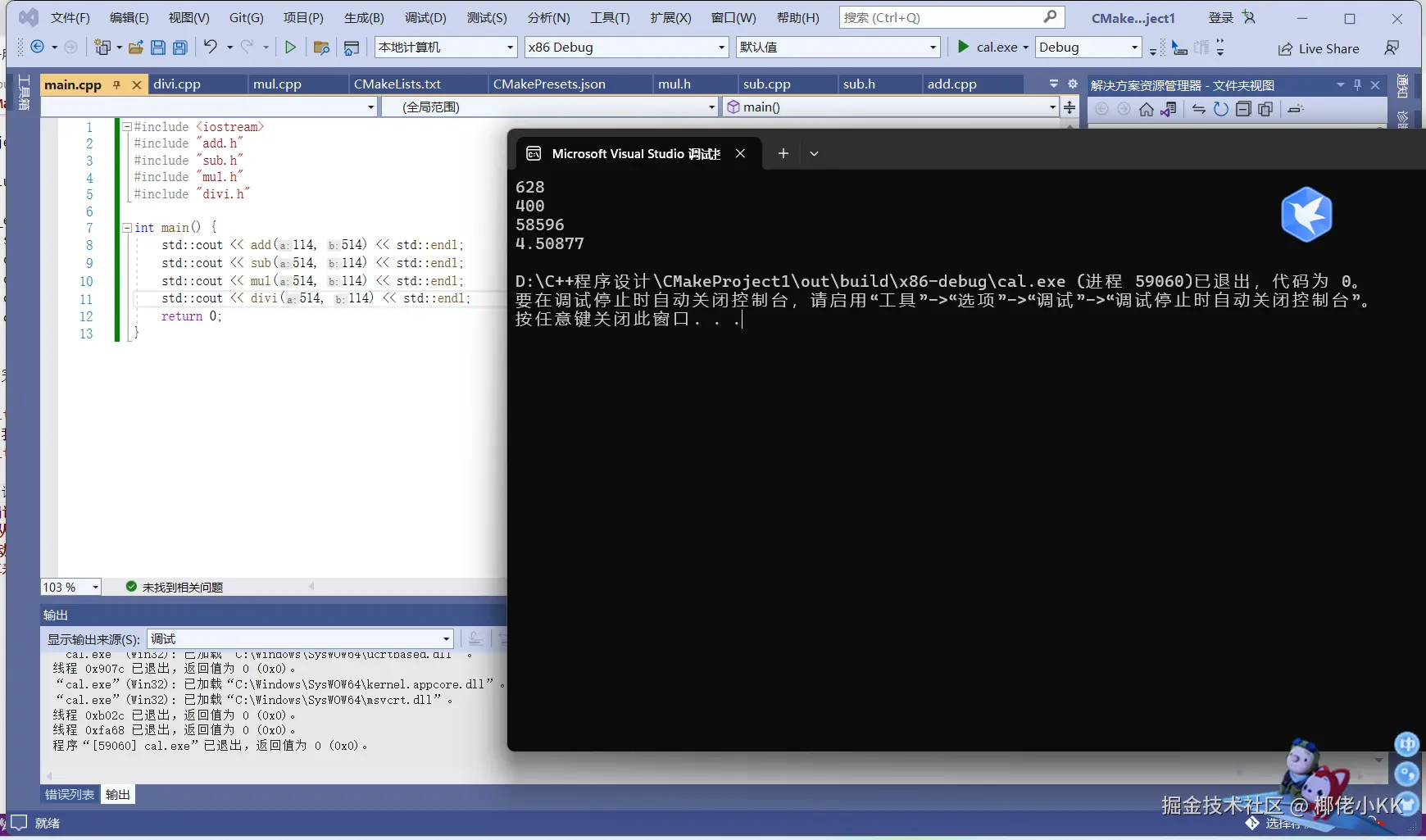 我们完成一个计算小demo,以此来感受一下CMake的使用,在这里就直接用Visual Studio来完成