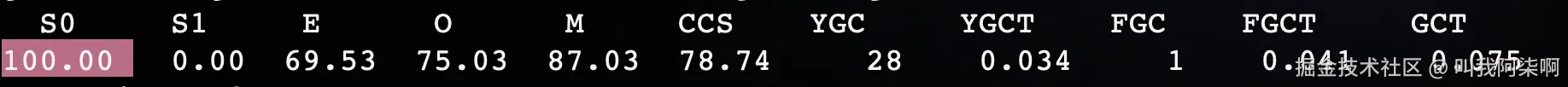 代码中一直在创建1KB的字节数组,我们使用jstat查看GC状态。