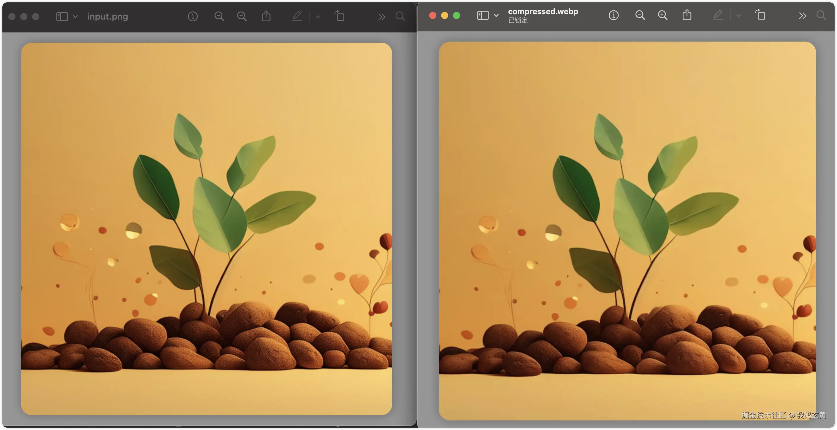 这行代码把一张2M的图片压缩到了32kb,对比效果如下: