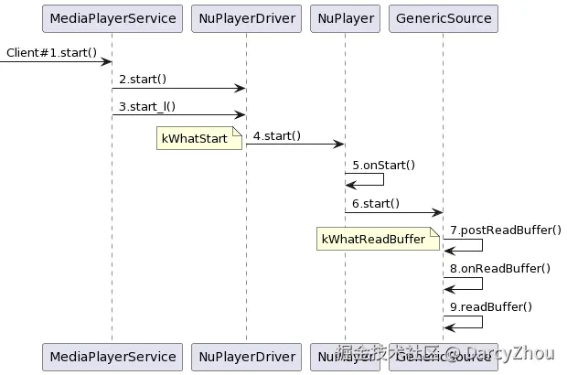 同时NuPlayer::GenericSource::start()函数中还发送了一个kWhatStart的msg,这个msg会通过NuPlayer::GenericSource::BufferingMonitor来维护着GenericSource的整个Buffer流程。