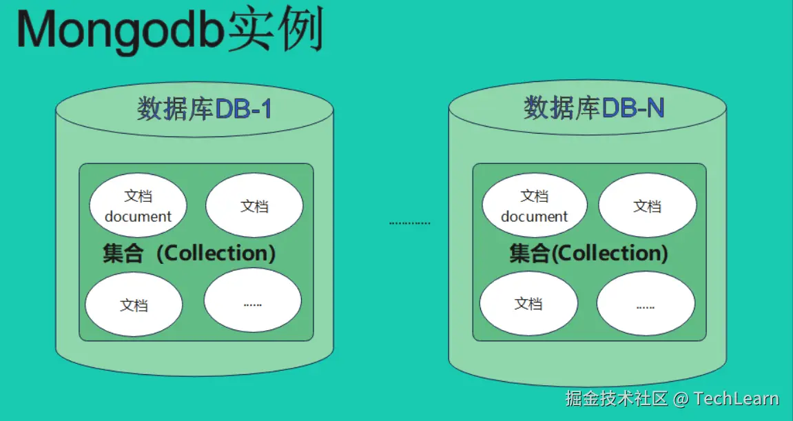 - 数据库(Database):数据库是由多个集合组成的容器。