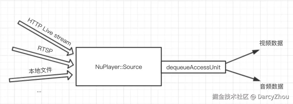 该函数用于为播放器提供原始媒体数据,audio表示是否为音频,accessUnit则是需要填充的buffer指针。