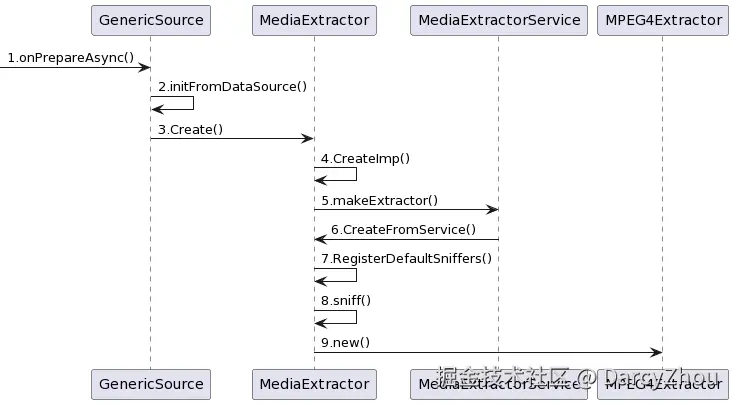 上接NuPlayer::GenericSource::onPrepareAsync()方法中在创建DataSource对象后,会调用initFromDataSource接口从数据源初始化提取器。接下来的代码流程如下:
