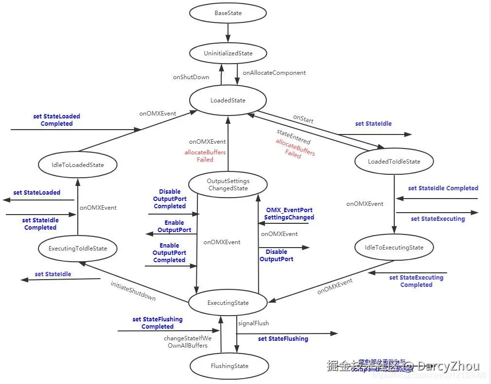 ACodec 通过状态机模式的切换,确保状态正确运行,及和OMX service交互,加载对应的编解码器,进行相应编解码。内部值得继续研究研究。