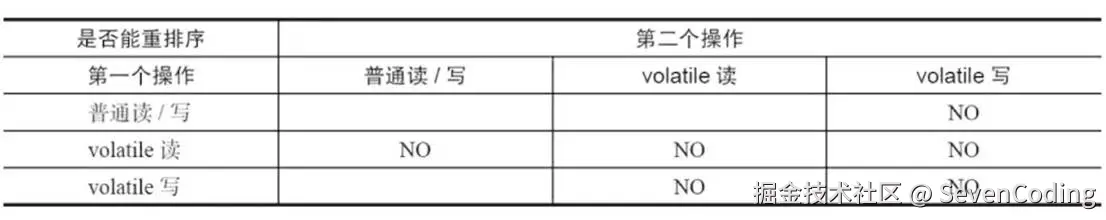 JMM 会针对编译器制定 volatile 重排序规则表。