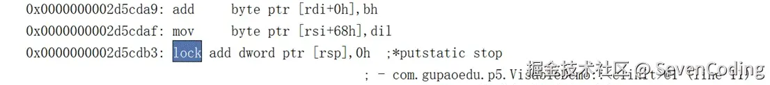 - 处理器会使用嗅探技术保证在当前处理器缓存行,主存和其他处理器缓存行的数据的在总线上保持一致。在JVM通过LOCK前缀指令更新了当前处理器的数据之后,其他处理器就会嗅探到数据不一致,从而使当前缓存行失效,当需要用到该数据时直接去内存中读取,保证读取到的数据时修改后的值。