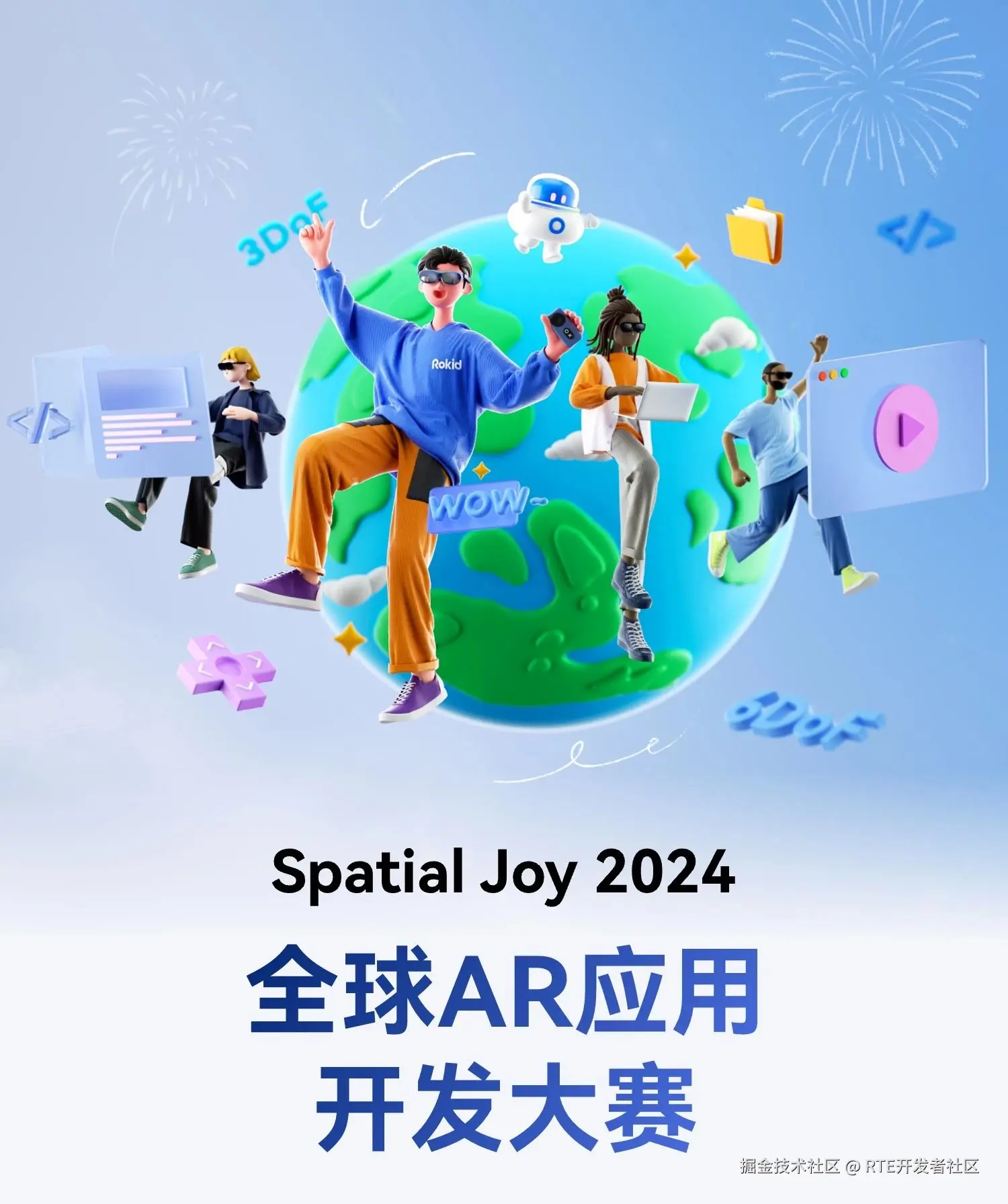 今年,Unity、声网、RTE开发者社区|超音速计划继续深度加入,与Rokid一起举办Spatial Joy 2024。参赛者可以在Rokid最新的AR硬件及操作系统上,使用Unity引擎,结合RTE服务,创作出具有颠覆性体验的游戏或者应用。