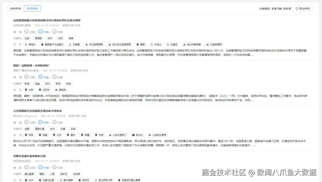 八爪鱼有多年的数据采集和分类经验,帮助过众多新闻行业的客户完成新闻采集和分类的的需求。目前八爪鱼数据中台正是基于此类需求建立,包含情感分析、关键词抽取、实体抽取、内容摘要等,满足客户的各种分类需求。