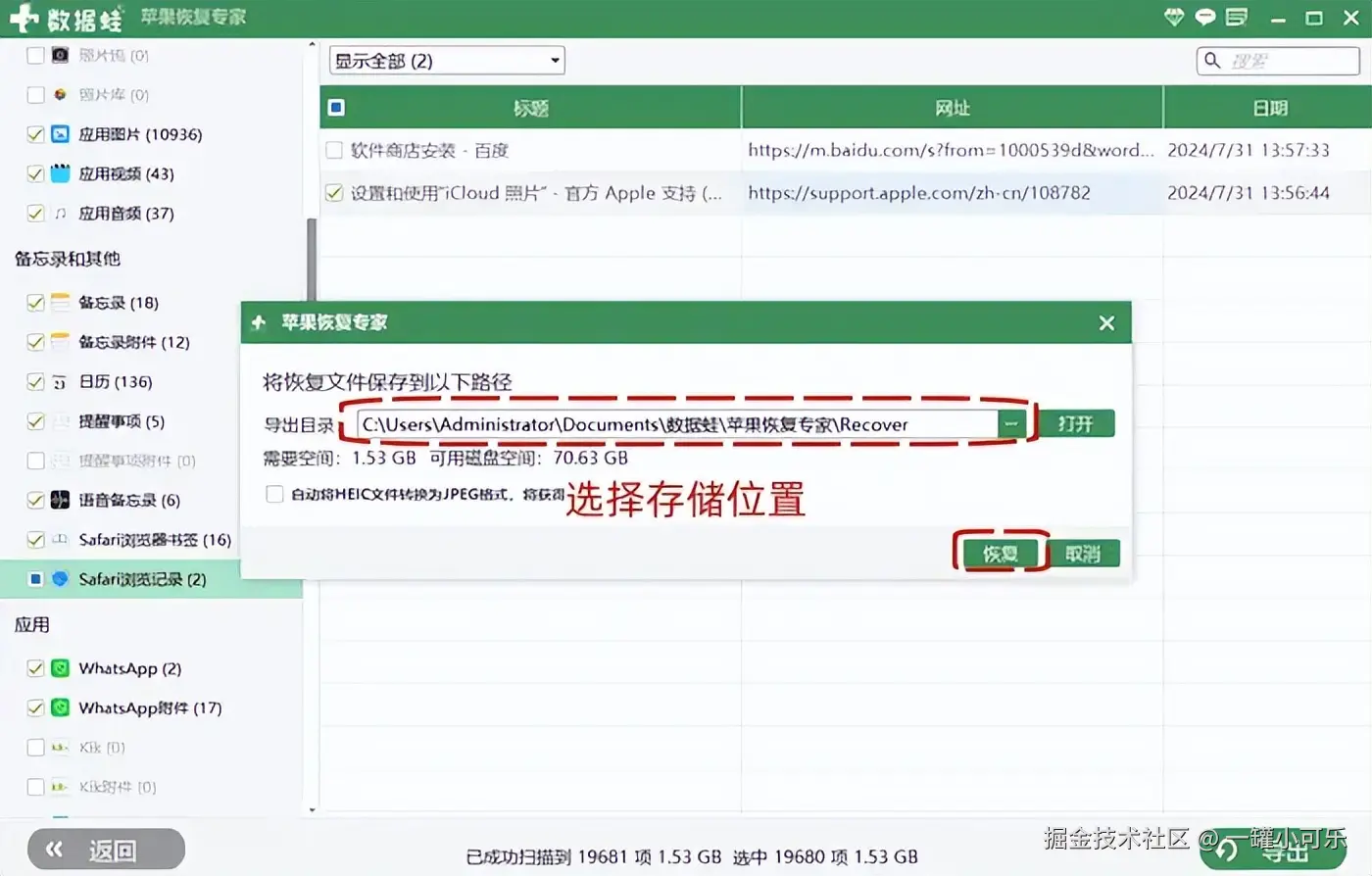 只需按照上述步骤操作,你就有很大机会找回那些重要的浏览痕迹。当然,对比这几种办法,数据 蛙苹果恢复专家的恢复率相对较高,恢复数据的范围也较为全面,因此小编推荐用户可以优先使用这个方法哦。