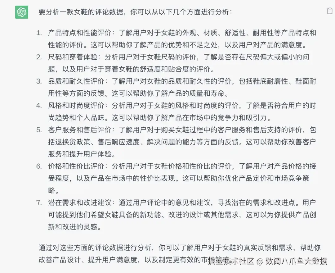 如果想要进行全面的商品评论数据分析,可以请ChatGPT提供思路和建议: