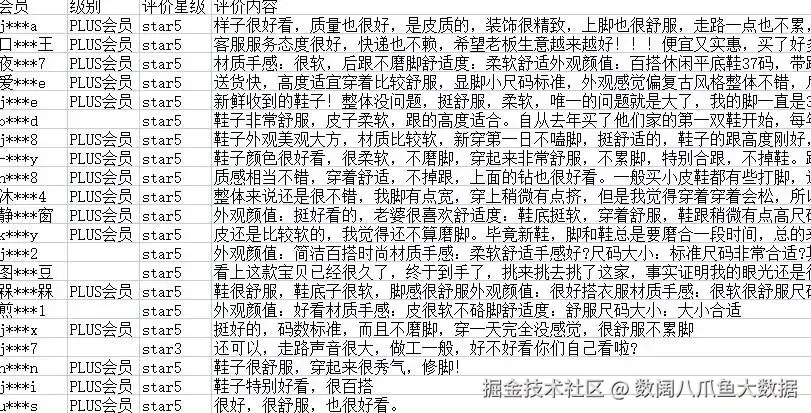 我们在京东平台随机选取了一款女鞋,利用八爪鱼将其评论全部采集下来。